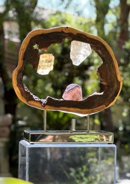 ROOTED IN NATURE, This sculpture carries the quiet strength of the earth—wood shaped by time, crystal formed deep within. It’s a reminder that healing is natural, and beauty often begins in stillness. My work begins with wood—organic, imperfect, and full of energy. When it’s paired with crystal, something deeper happens: a calm, healing presence that […]