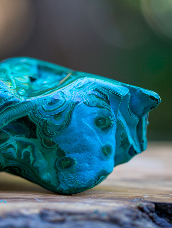 MALACITE: Revered as a “stone of transformation,” malachite is prized for its deep green bands and protective energy. It symbolizes growth and renewal, encouraging change while absorbing negativity. A vibrant presence, it brings strength and balance to the spaces it inhabits.