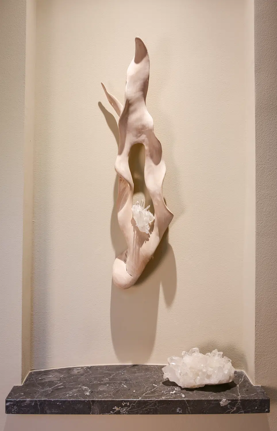 Enlightened Connection bridges the grounded wisdom of nature with the clarity of higher insight. Bleached Teak Wood flows with organic grace, while Quartz Crystal radiates pure, stabilizing energy. Together, they form a sculptural pathway—an invitation to align mind, body, and spirit in quiet harmony. A piece that reminds us true connection begins within.