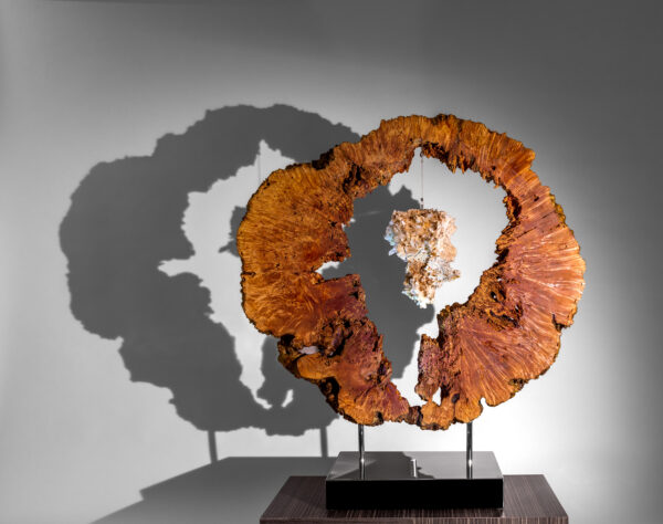 This modern organic sculpture combines the natural beauty of Burl Maple Wood with the powerful energy of Lamarian Quartz, known for its deep, grounding healing properties. Soft LED lights bring a calming glow, while the high-polish stainless steel base adds a sleek, modern touch. The piece radiates balance and serenity, making it a perfect addition to any space looking for a peaceful, mindful vibe.